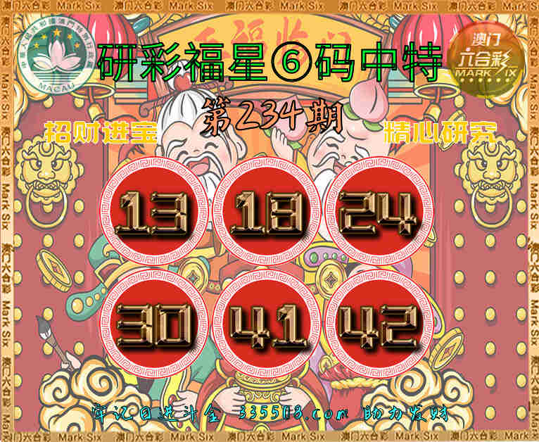 234期:〖研彩福星〗 😳⑥码中特😳【13.18.24.30.41.42】开:13准