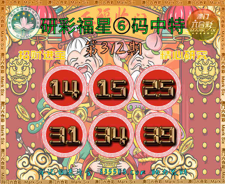 312期:〖研彩福星〗 😳⑥码中特😳【14.15.25.31.34.39】开:14准